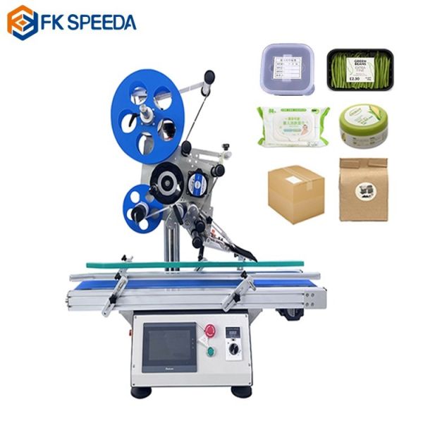 0.2mm FK611 Automatic Small Desktop Mylar Bag Carton Pouch Round Can PET Plastic Vial Bottle Jar Plane Top Labeling Machine Images |